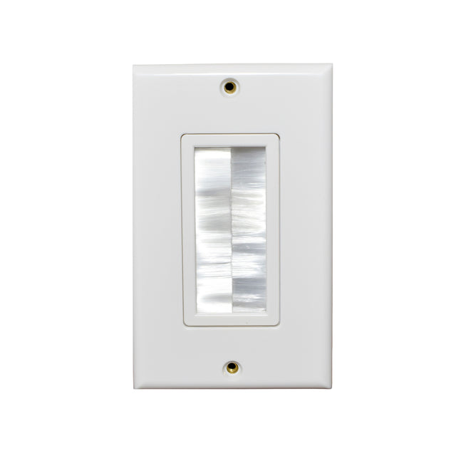 This brush wall plate fits any standard single gang outlet box and is compatible with existing Decora-style wall plates for seamless integration into your setup.