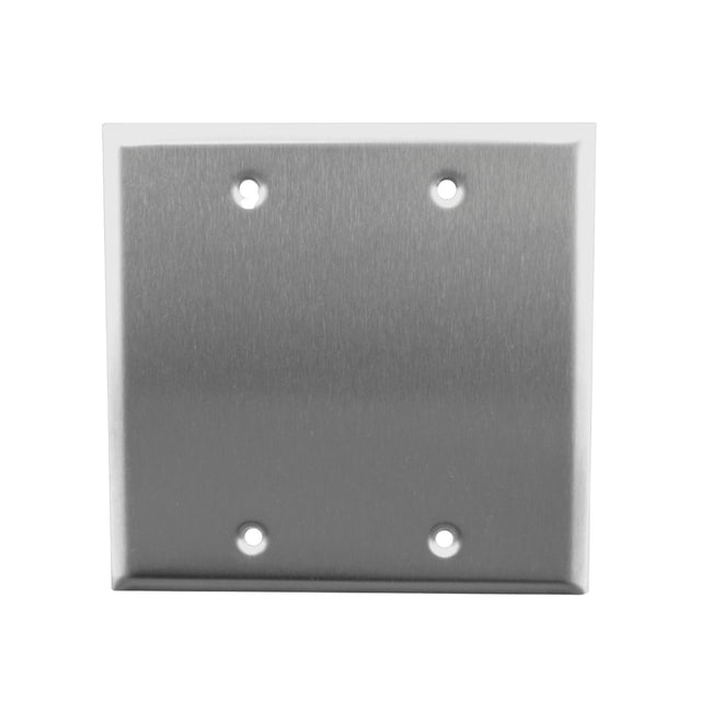 Our stainless steel blank faceplate double gang is the perfect solution for covering unused double gang work area outlets, keeping spaces safe, clean, and professional looking.