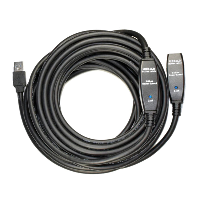 The Active 3.0 USB Extension Cable extends your USB 3.0 connection by 10 meters (32.8 feet), allowing flexible setup for peripherals without sacrificing speed or reliability. Ideal for devices requiring high-speed data transfer over longer distances.