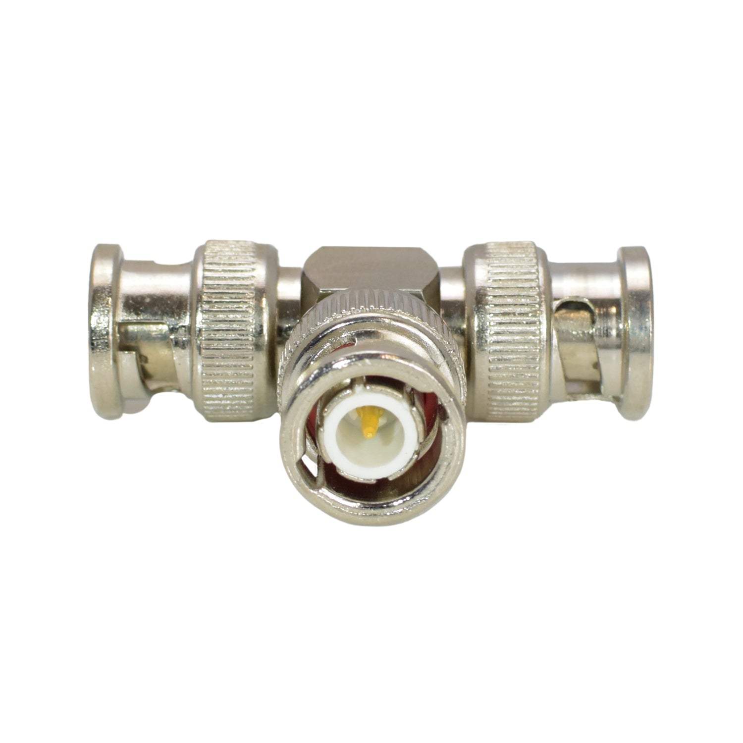 This BNC Male Plug to Dual BNC Male Plugs T Type Adapter provides a quick and efficient way to split a signal between two devices. Ideal for use in video, test equipment, and RF applications, it maintains solid signal continuity through its precise design.